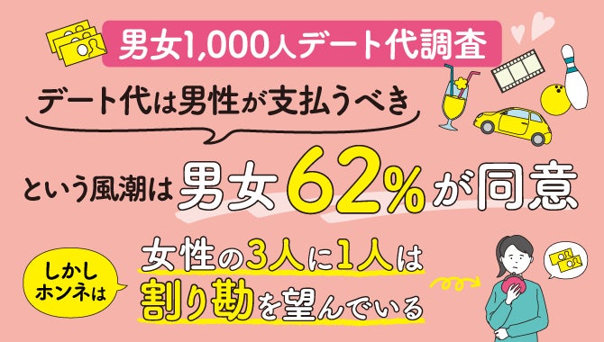 男女1000人デート代調査で、62%は「デート代は男性が支払うべき」という風潮、ただし女性の3人に1人は割り勘希望。
