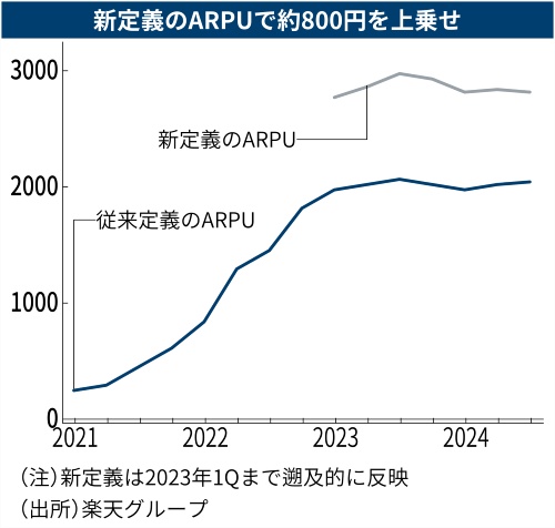 楽天モバイルは楽天市場全体への貢献額を従来のARPUに上乗せして、新定義のARPUを設定し、