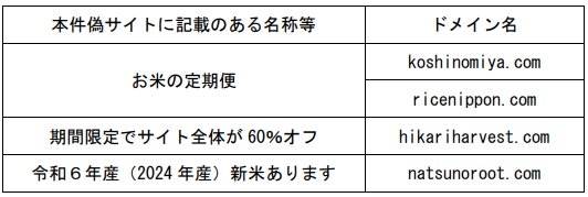 お米を安く販売しているかのように装った偽サイトに関する注意喚起 | 消費者庁