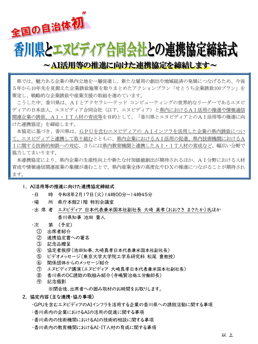 エヌビディア合同会社との連携協定締結式を開催します | 香川県 せとうち企業誘致100プラン