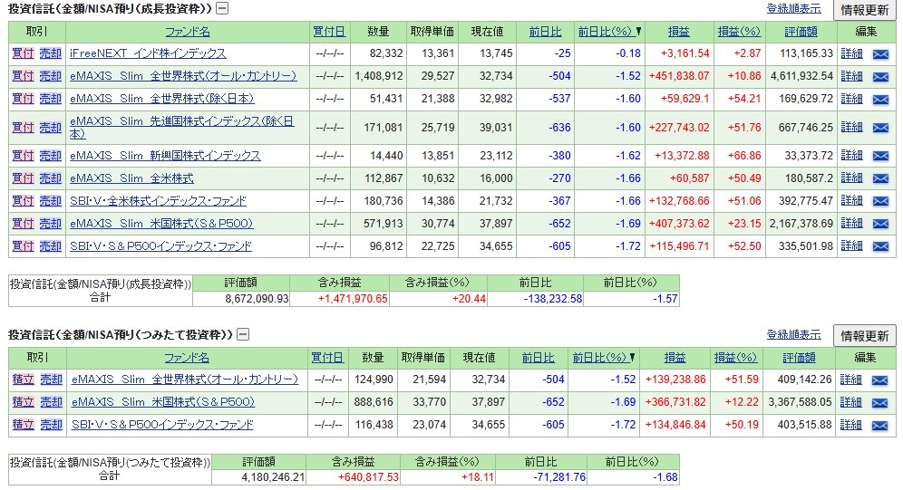 管理人は今年度のNISA枠は埋めたので、淡々と毎日分散で特定口座でインデックス投信を買っていきます。
