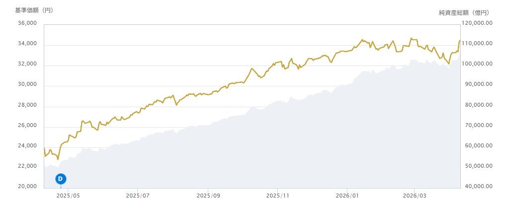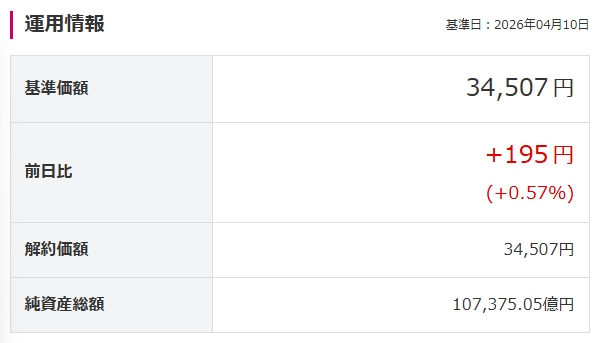 基準価額は34,507円、前日比+195円(+0.57%)(4/10現在)となりました。