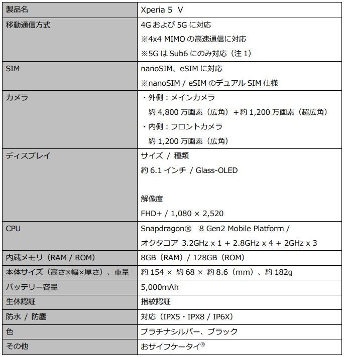楽天モバイルでXperia 5Vを15.2万円で予約開始。9/20~。発売は10/13~。SD8Gen2/8GB/128GB/IP68防水防塵/おサイフケータイ。