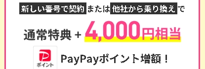 期間中は新規でもMNP通常時+4000PayPayポイントが貰えます。