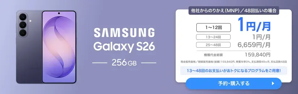 | Samsung Galaxy S26+ | 28,000円相当 | 14,000円相当 | 7,000円相当 |
