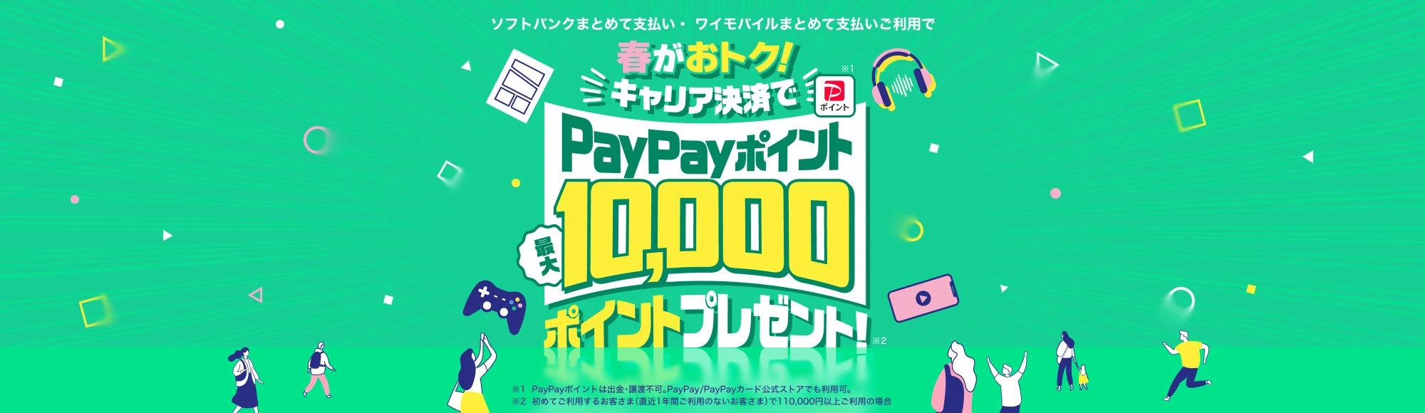 ソフトバンク・ワイモバイルで初めてキャリア決済で最大10000円PayPayバック。App&iTunes Store/Google Playストアなどが対象。~5/31。