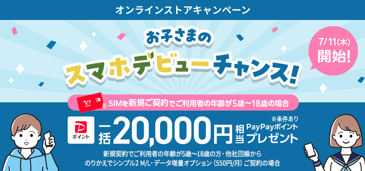 ワイモバイルで5-18歳限定、純新規でも2万PayPayポイント付与キャンペーンを開催へ。7/11~。