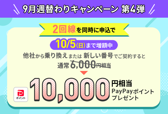※ 2回線まとめて申し込みの2回線目を対象にしたPayPayポイントプレゼントキャンペーンは当キャンペーンのみです。