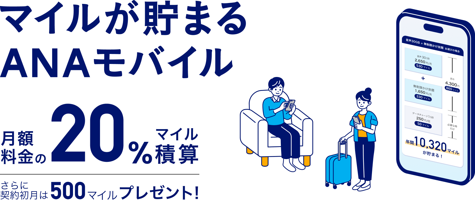 ANAモバイル、爆誕。月額の20%がマイルで還元。契約で500マイルが貰える。3/24~。