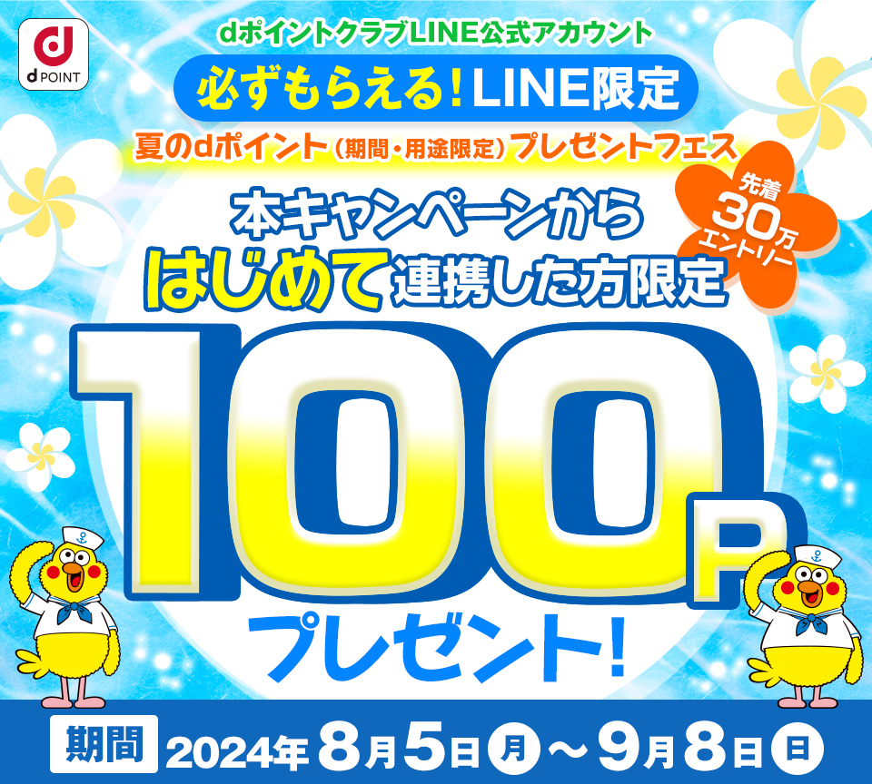 dポイントクラブのLINEアカウントとdアカウントを初めて連携で100dポイントが貰える。~2026/2/28。