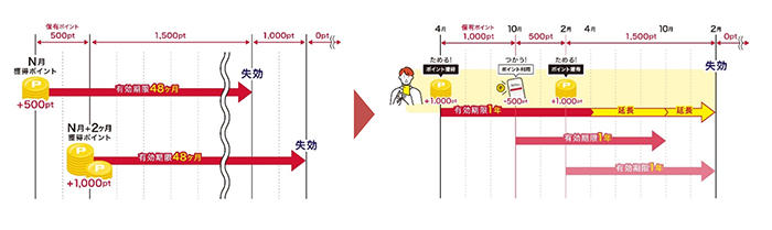 獲得したポイントごとに、 獲得月から48か月後の 月末まで |
