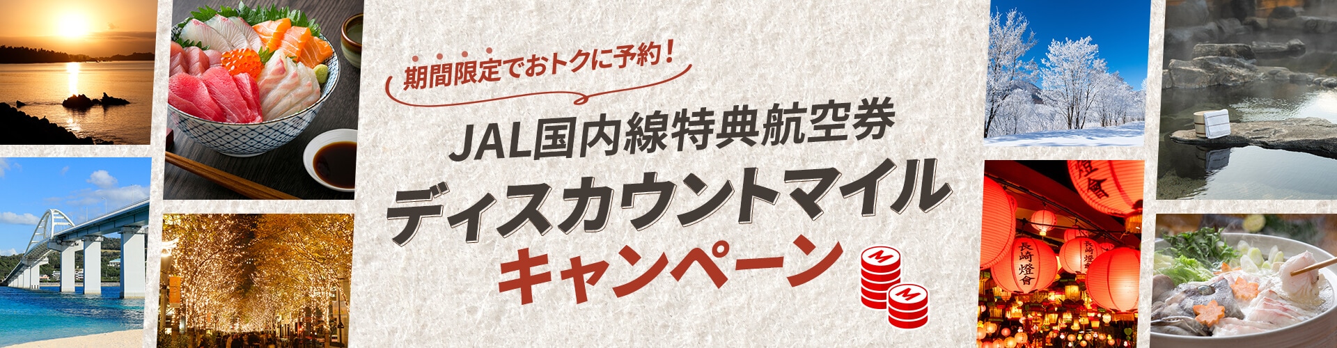 JAL国内線特典航空券が通常よりも少ないマイル数で予約できる、ディスカウントマイルキャンペーンが開催されます。