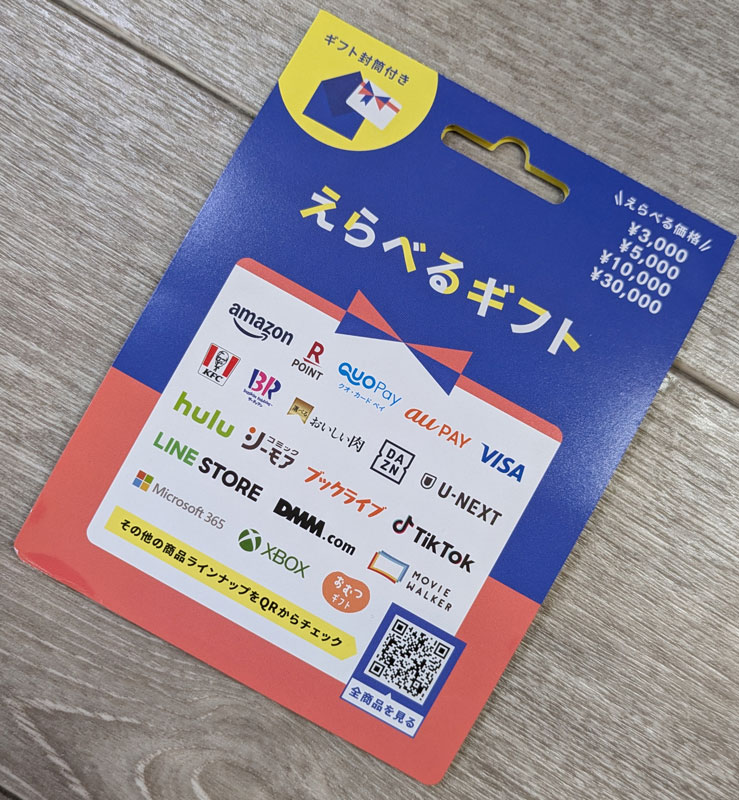 えらべるギフトがミニストップとファミリーマートで販売開始となり、auPAY、アマゾン、Visa eギフトは等価交換可能です。