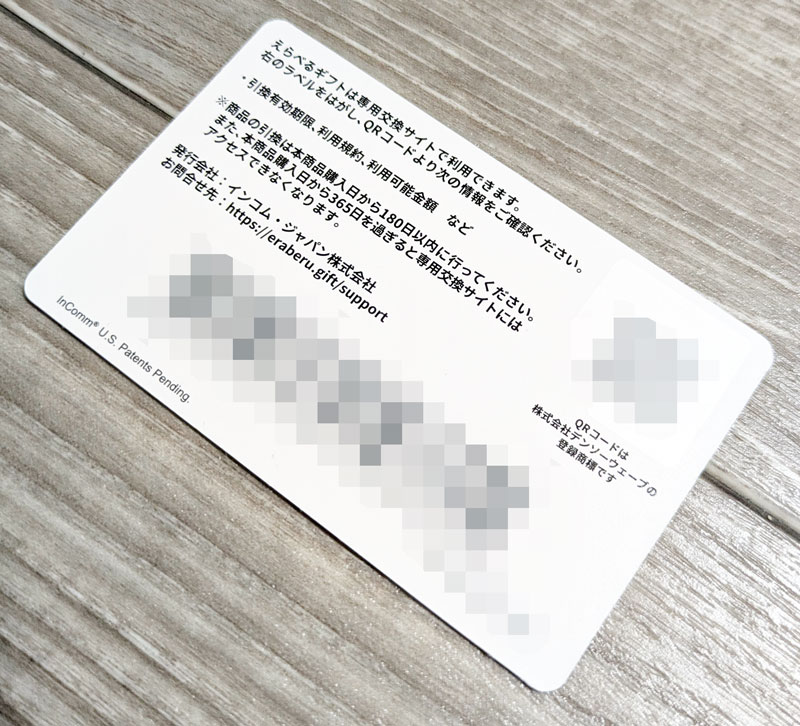 裏面です。右上のQRコードがシールされていますので、それを剥がして読み取って、