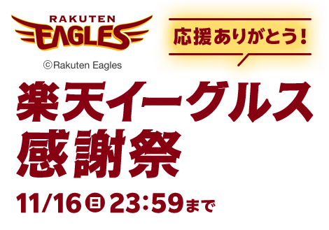楽天イーグルス感謝祭で買いまわりでポイント5倍。11/14 10時~11/16。