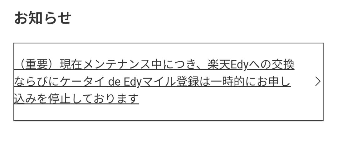 ケータイ de Edyマイルの登録を休止中であることに気が付きました。