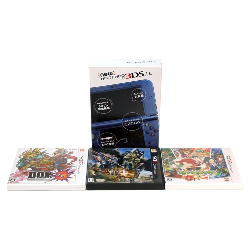 アマゾンで【中古セット】New ニンテンドー3DS LL メタリックブルー+モンスト+ドラクエジョーカー3+モンハン4Gがセットで16500円。
