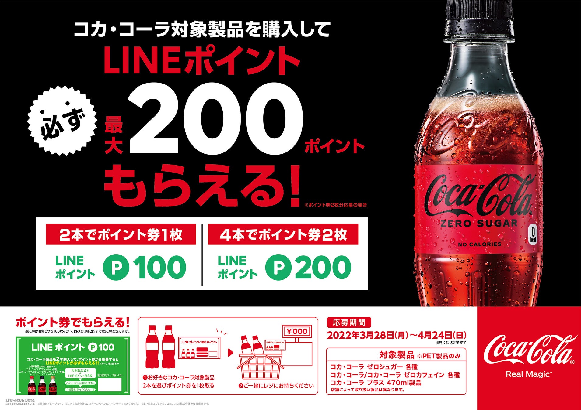 コカ・コーラを2本以上買って店頭に設置された「LINEポイント券」1枚をレジに持ち込むと、