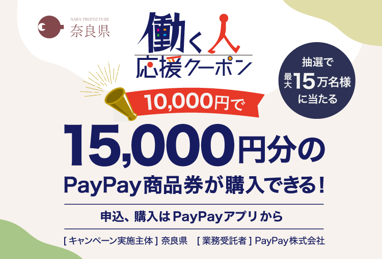 奈良県でプレミアム率50%の「働く人応援クーポン」が販売予定。10/2~10/22。