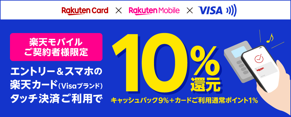 楽天カード、楽天モバイルご契約者様限定でVisaのタッチ決済利用で10%還元キャンペーンを開始! | 楽天カード株式会社のプレスリリース