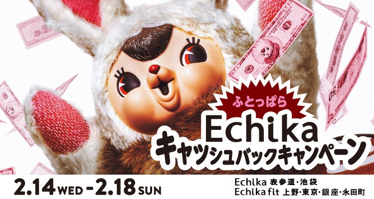 東京メトロ駅構内の駅チカ商業施設エチカで100円~1000円が当たる「ふとっぱらEchikaキャッシュバックキャンペーン」を開催中。~2/18。
