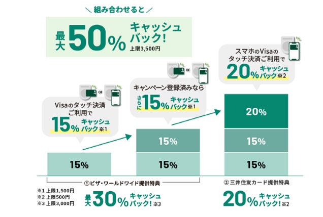 ・さらに、Visaのウェブサイトからキャンペーン登録で+15%キャッシュバック