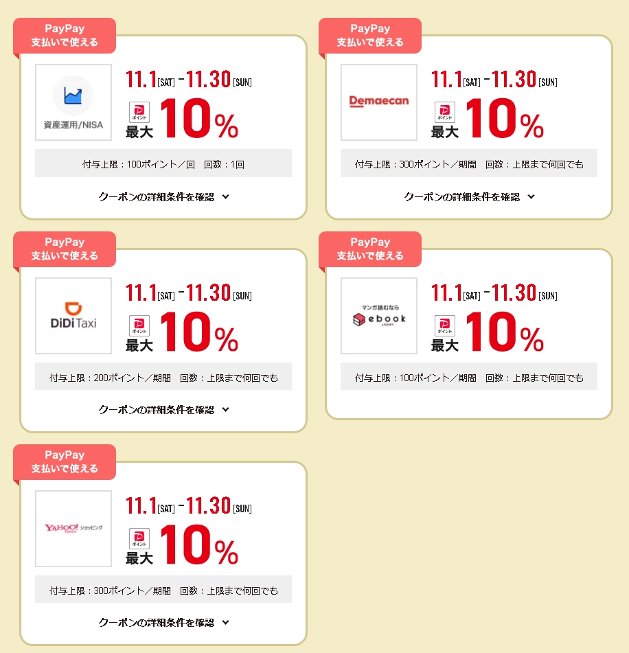 11月のクーポン